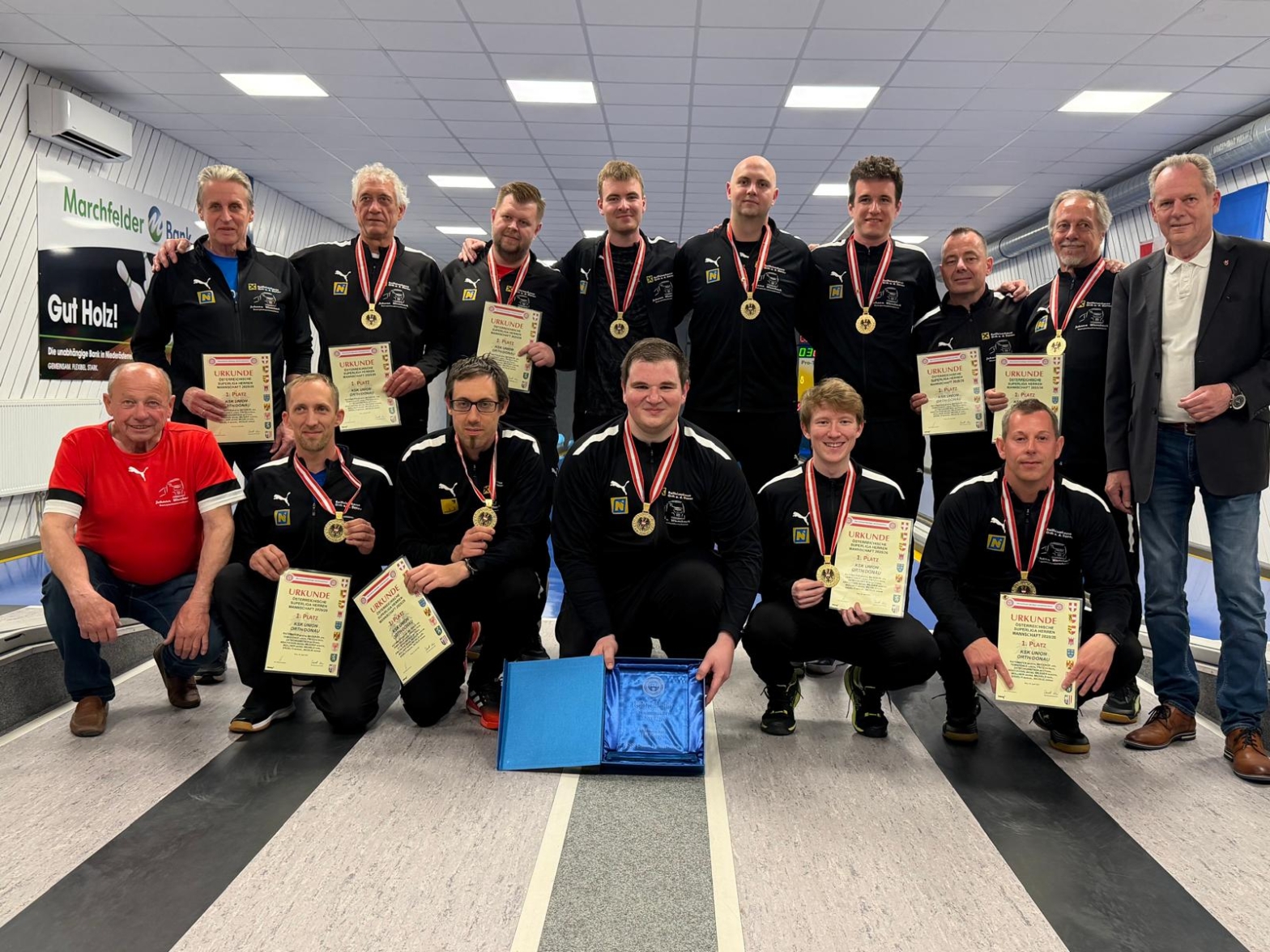 Am Ende krönten sich die Orther mit einer tollen Saison zum verdienten Staatsmeister vor Neunkirchen. Nach schwachem Beginn in der Meisterschaft kämpften sich die Orther in den entscheidenden Partien stark zurück und holten nun den Hattrick mit 3. Titeln in Folge!!